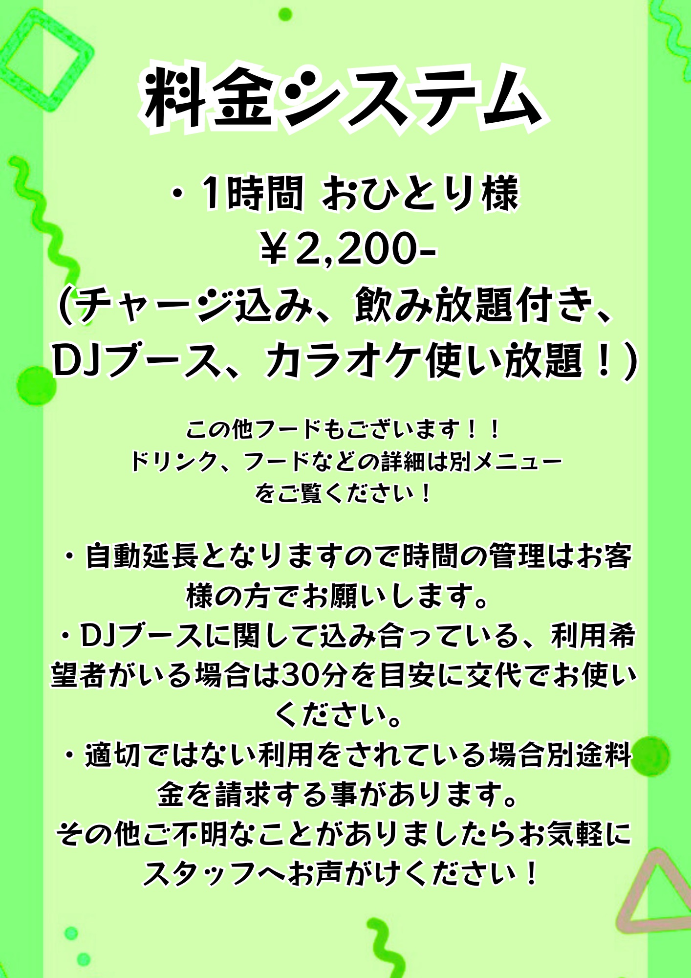 ※ドリンクノルマあり(入場時のドリンクチケット含む50杯×¥700-)未達成の場合差額を頂きます。